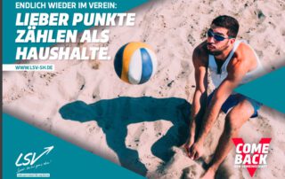 Nach vielen für alle herausfordernden und entbehrungsreichen Monaten im Lockdown ist die Freude groß, dass der Vereinssport in Deutschland nun endlich wieder hochgefahren werden kann und hoffentlich bald wieder ohne Einschränkungen möglich sein wird. In dieser Phase hat der Deutsche Olympische Sportbund (DOSB) als Dachverband aller Sportverbände und -vereine vor Kurzem gezielt die Marketing-Kampagne „Comeback“ gestartet. Wir freuen uns, dass Ihr wieder dabei seid. Weitere Infos des LSV findet ihr hier: https://www.lsv-sh.de