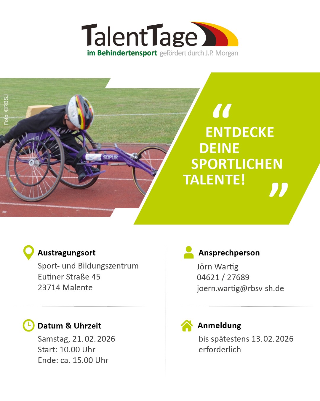 Am 21.02.2026 findet von 10-15h in Malente wieder ein TalentTag statt.